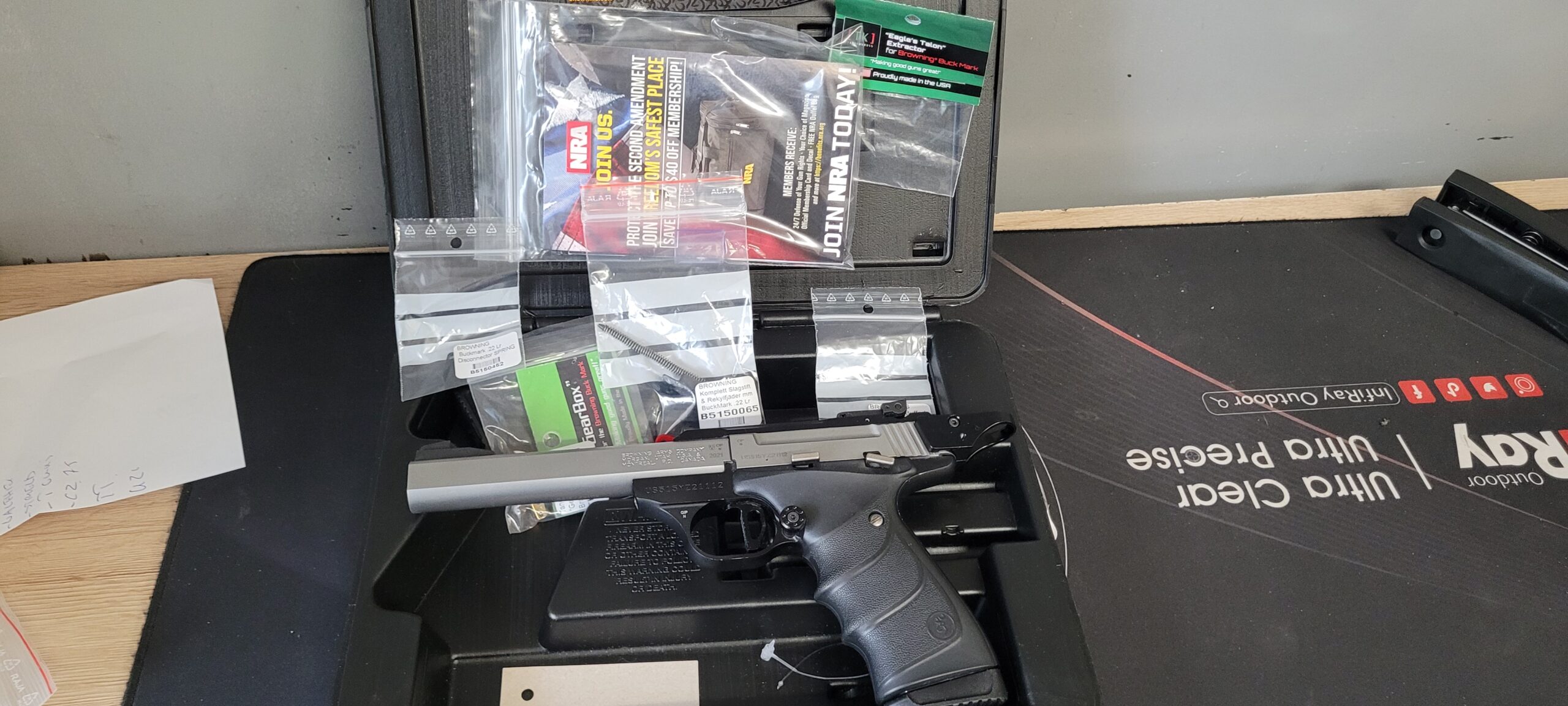Pistolet Browning Buck Mark w stanie idealnym. Posiada oryginalne pudełko, oraz dużą ilość części zamiennych Stan Idealny,broń po dobrym tuningu. Praktycznie brak śladów użytkowania.