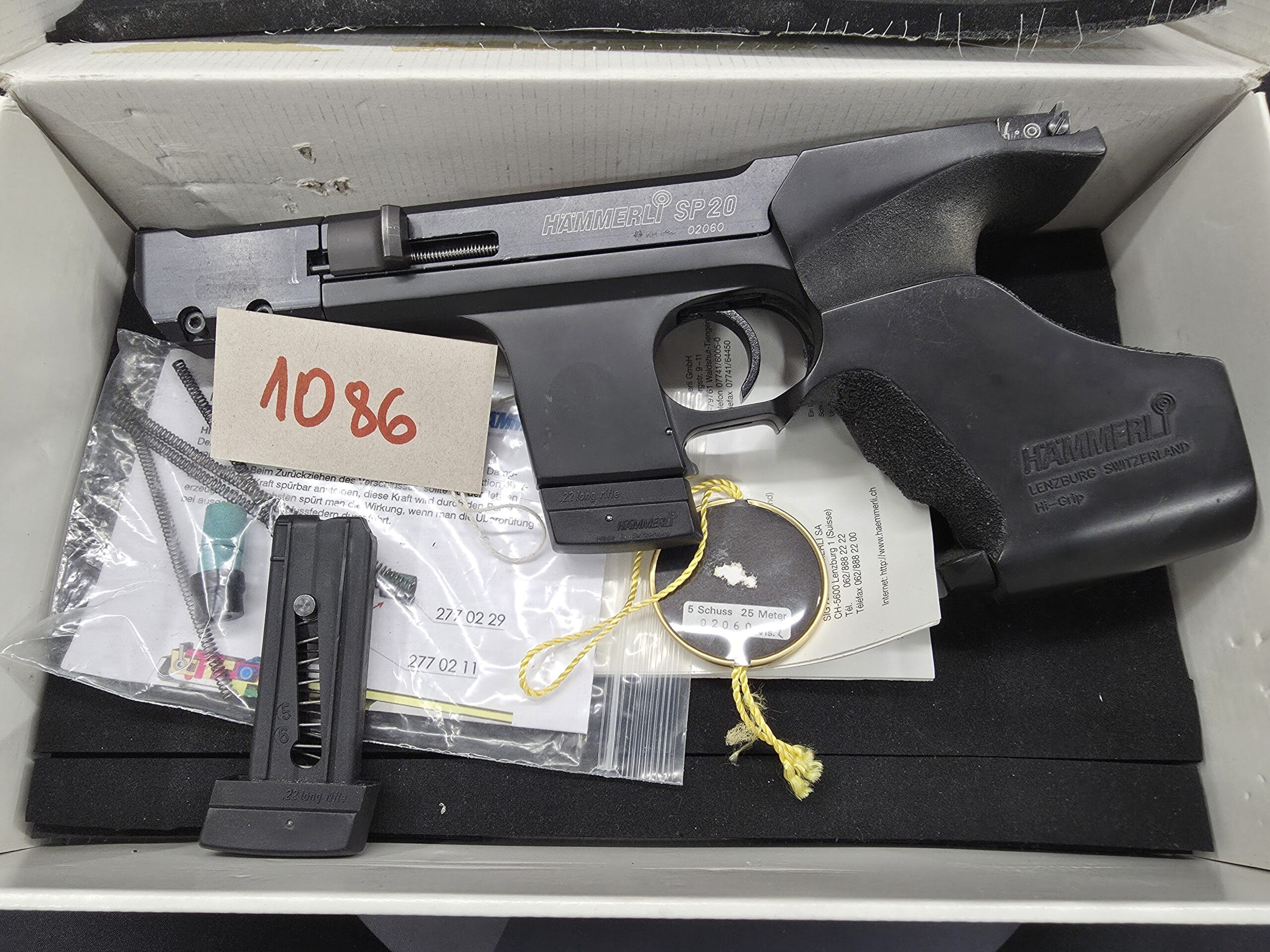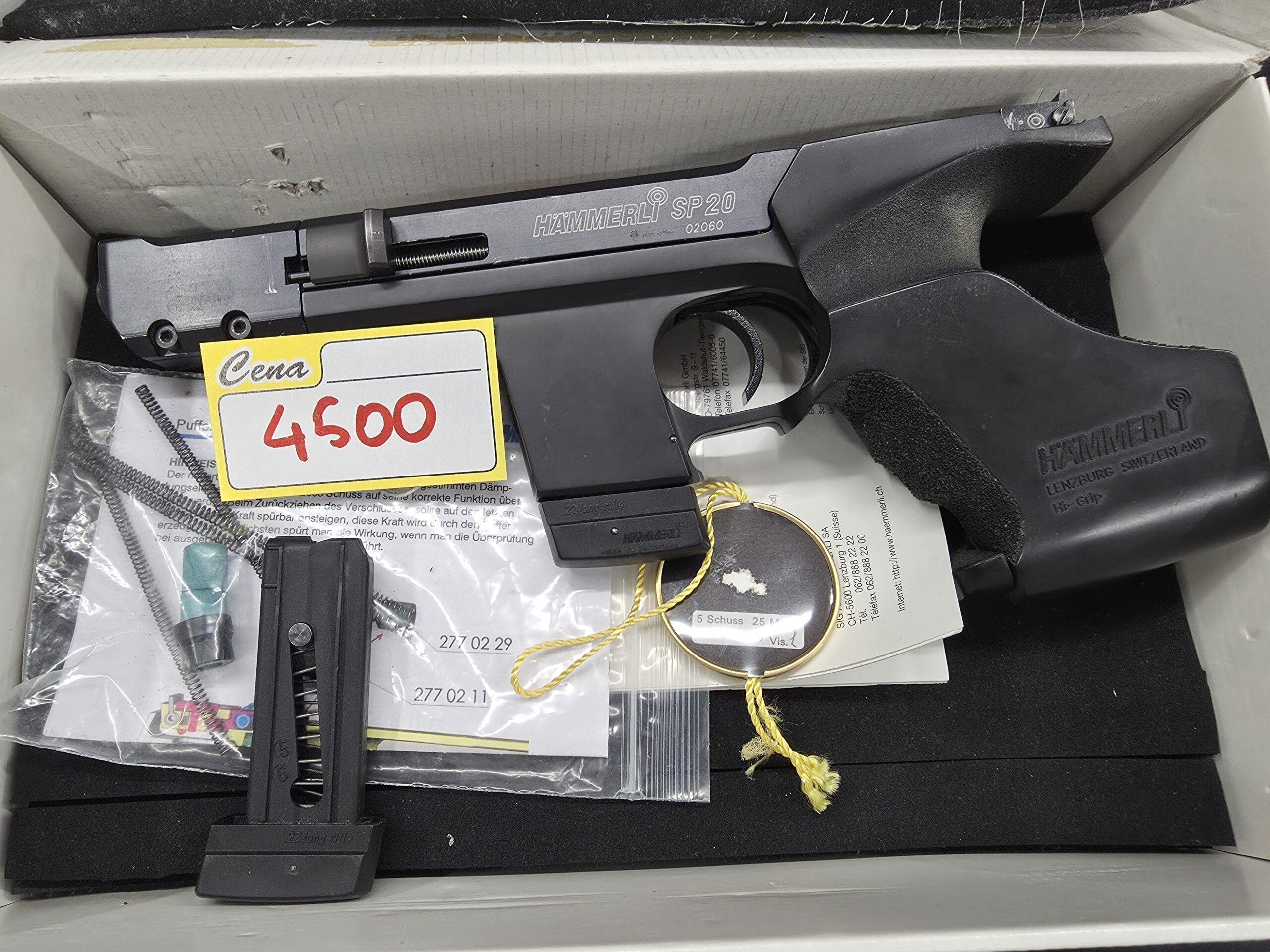 Szwajcarski pistolet sportowy marki Hämmerli model SP 20 kaliber 22lr. Broń używana w świetnym stanie. Dodatkowy magazynek i częsci zamienne w komplecie.