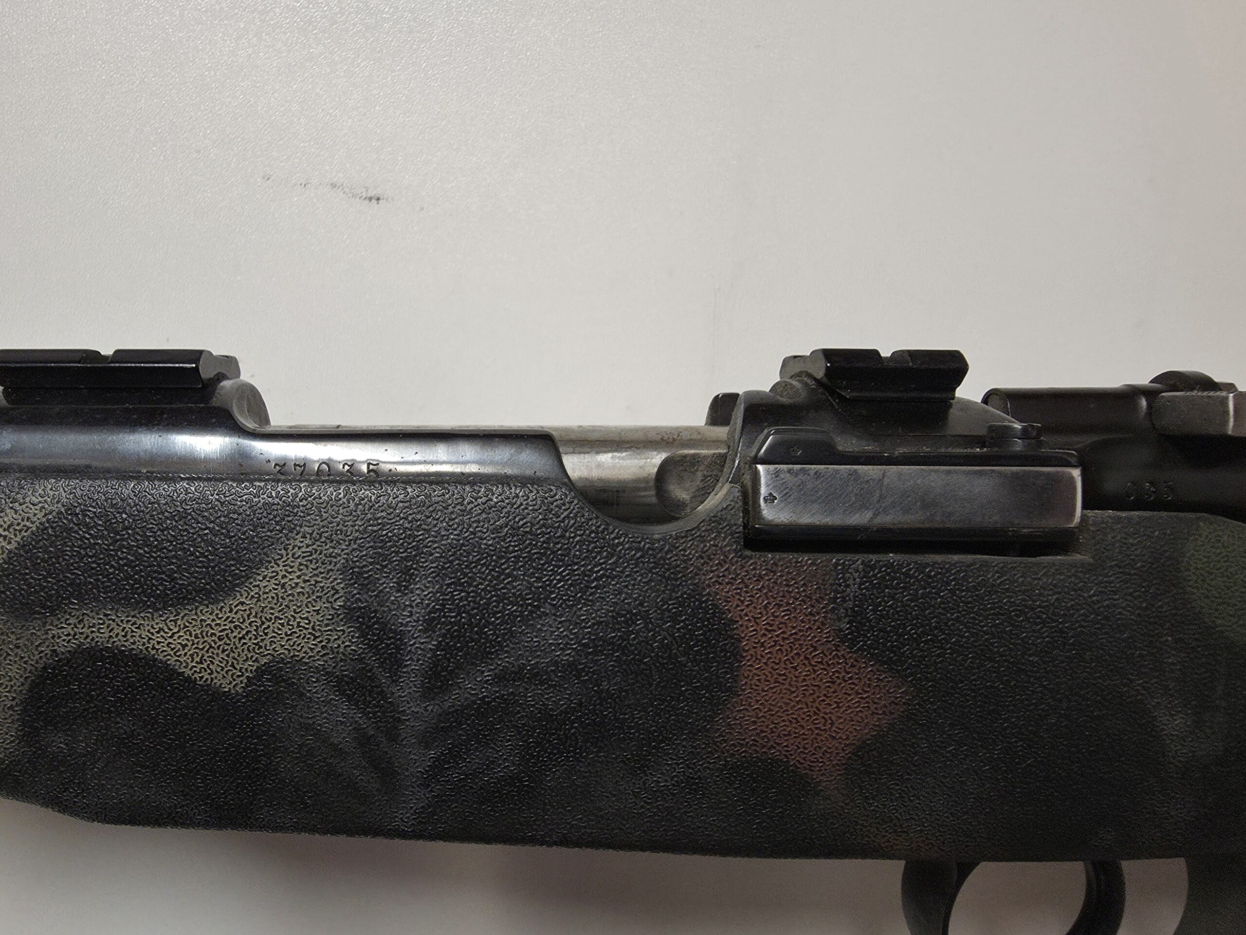 Szwedzki sztucer myśliwski na systemie Mausera w kalibrze 30-06.Posiada bezpiecznik umożliwiający niski montaż optyki.